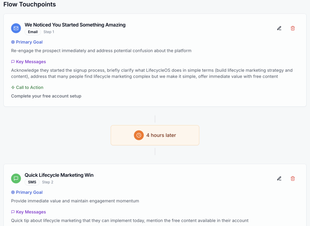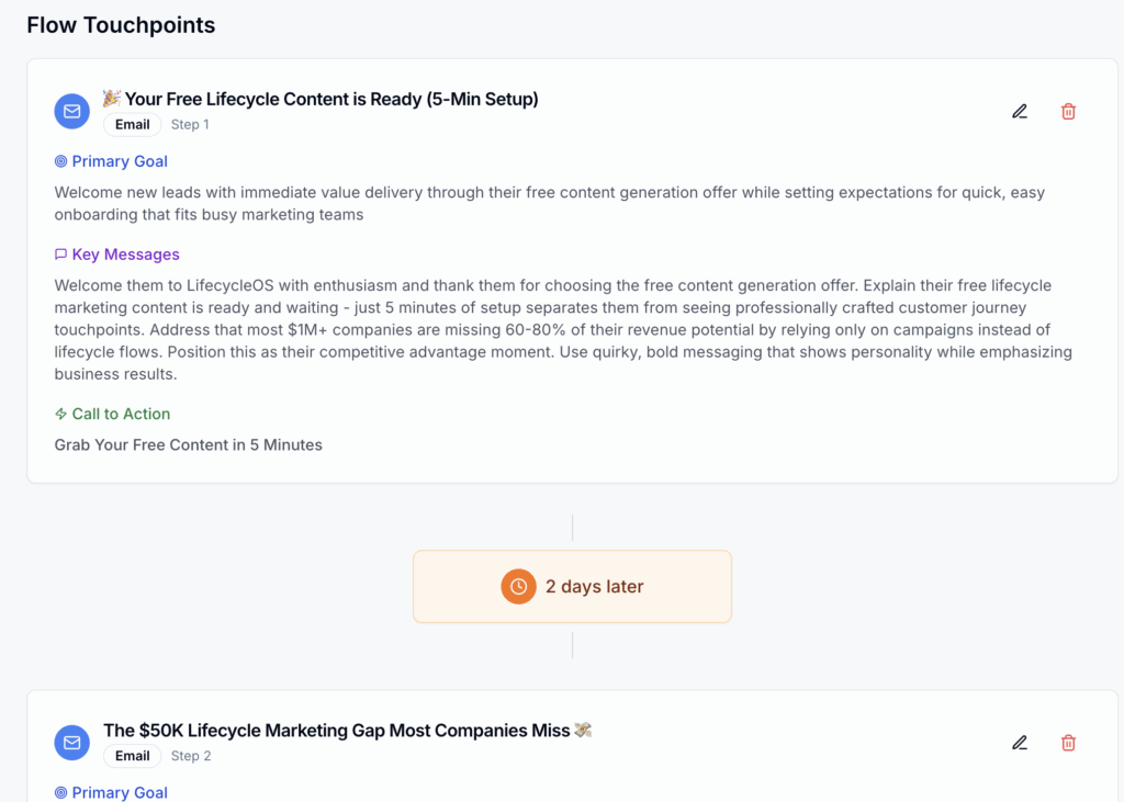 If you’d like to try LifecycleOS, just visit the website – getting started is always free, and you get one free entire flow and content generation for free for life. Sign up here.